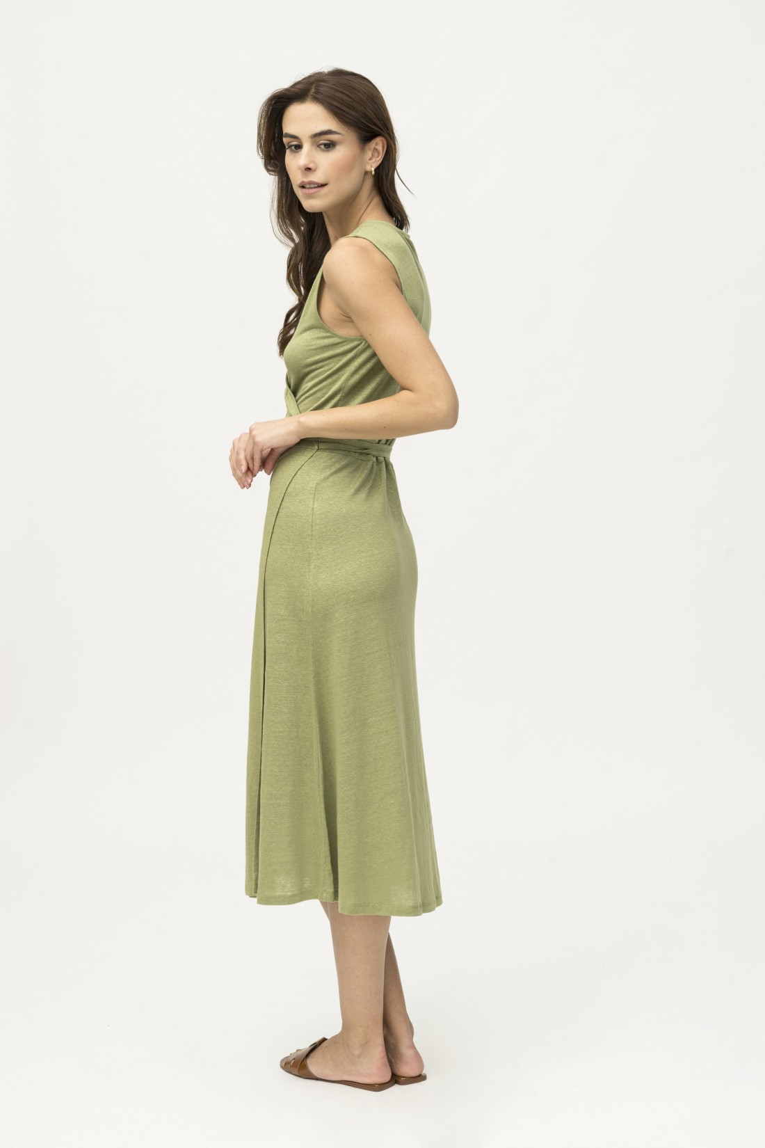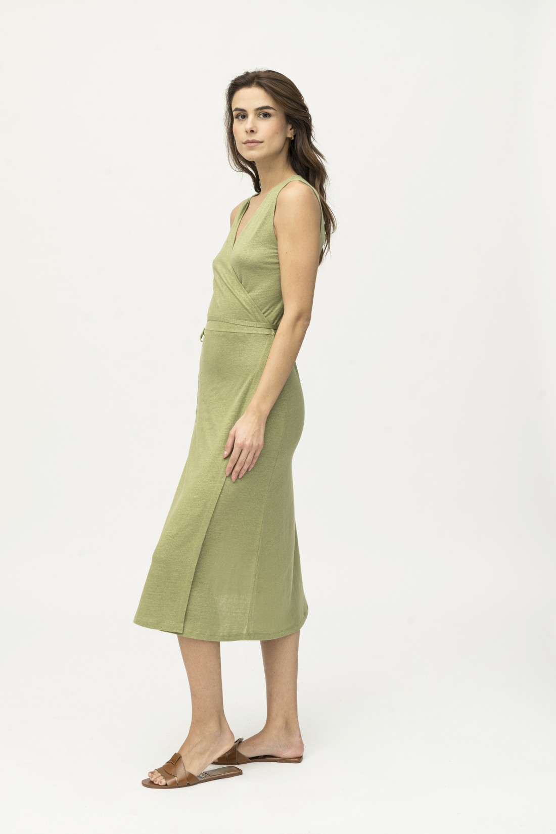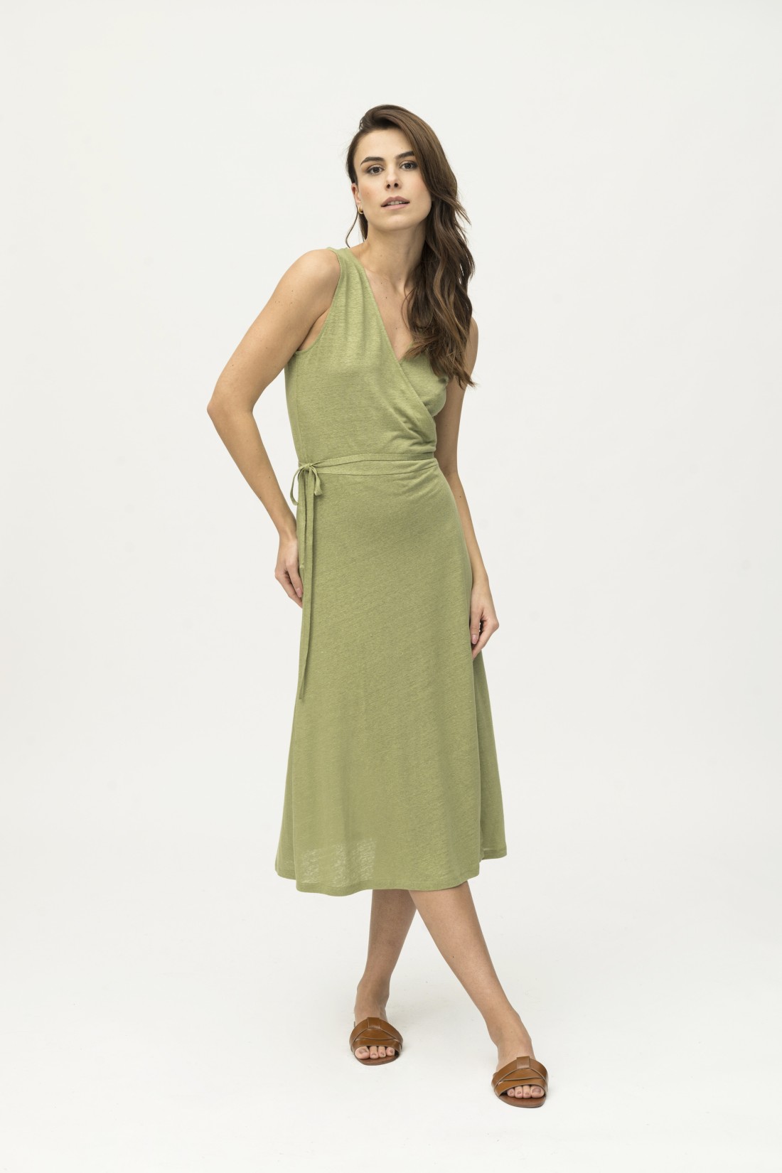 Abito in lino a portafoglio con laccio