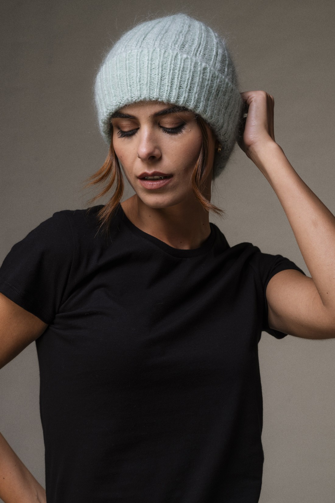 Cappello invernale con risvolto in mohair e lana merinos
