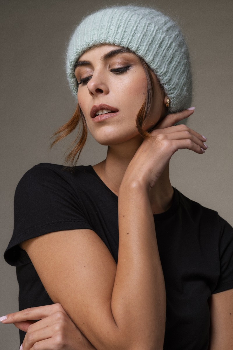 Cappello invernale in Mohair. La composizione tra mohair e lana merinos lo rende molto caldo, soffice e particolarmente morbido al tatto, perfetto per le giornate più fredde, un accessorio chic per i tuoi look invernali.