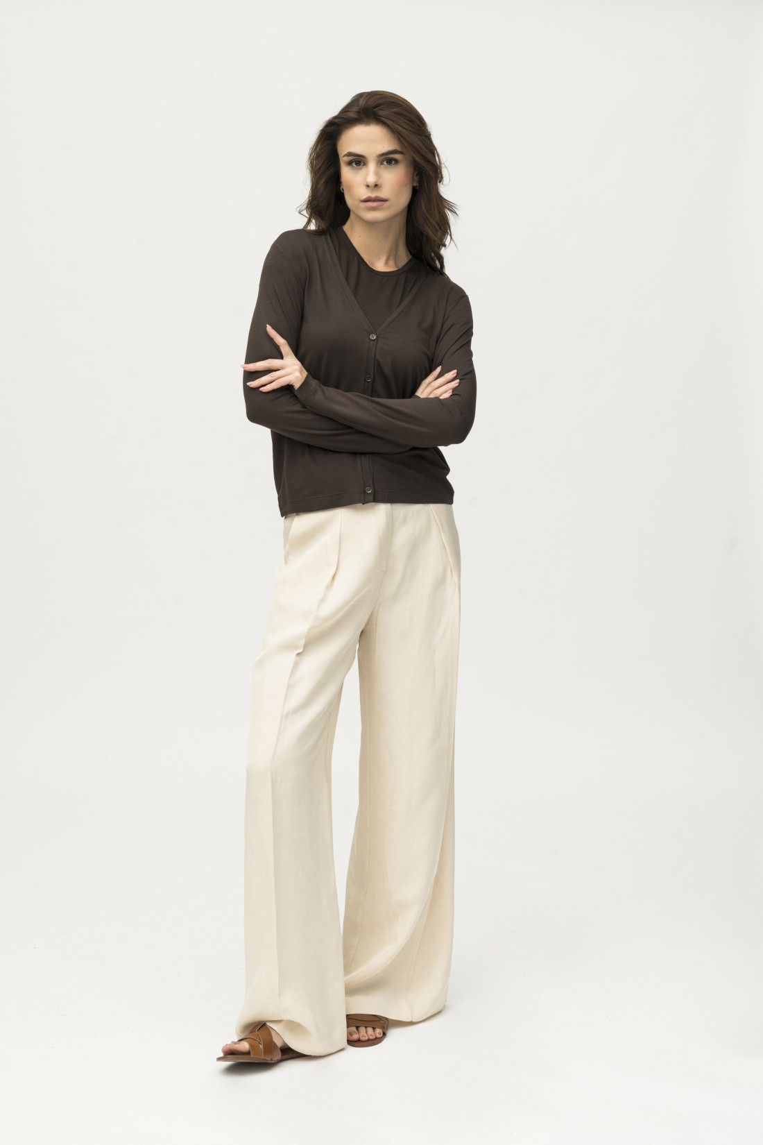 Cardigan con bottoncini e vestibilità regular : un capo versatile e moderno, perfetto sia per look eleganti che per look essenziali. La composizione di lino ed elastan rende questa maglia preziosa e confortevole, mentre l’ampiezza e la fluidità delle forme ne esaltano la leggerezza e dinamicità.