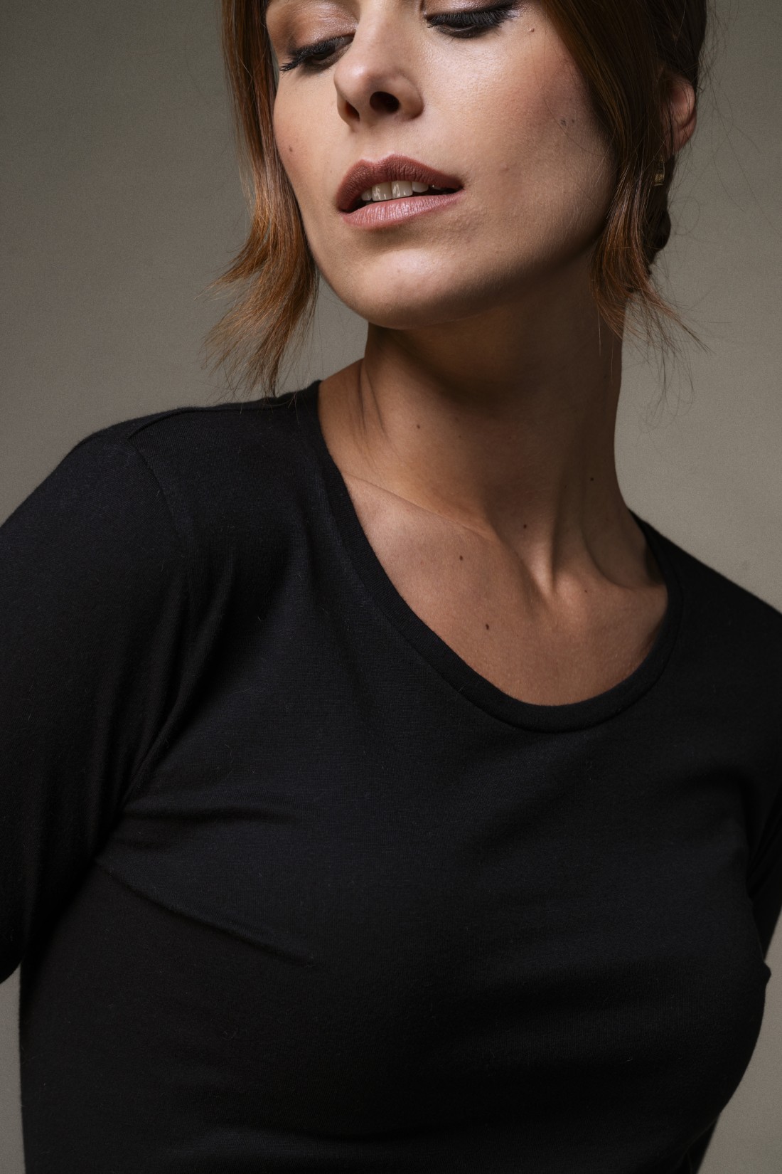 T-shirt basica girocollo in 100% Cotone Deluxe con manica lunga e vestibilità slim: un capo passepartout semplice e versatile. La composizione in Cotone Deluxe la rende confortevole e morbida al tatto, perfetta sia per look eleganti che per look essenziali.