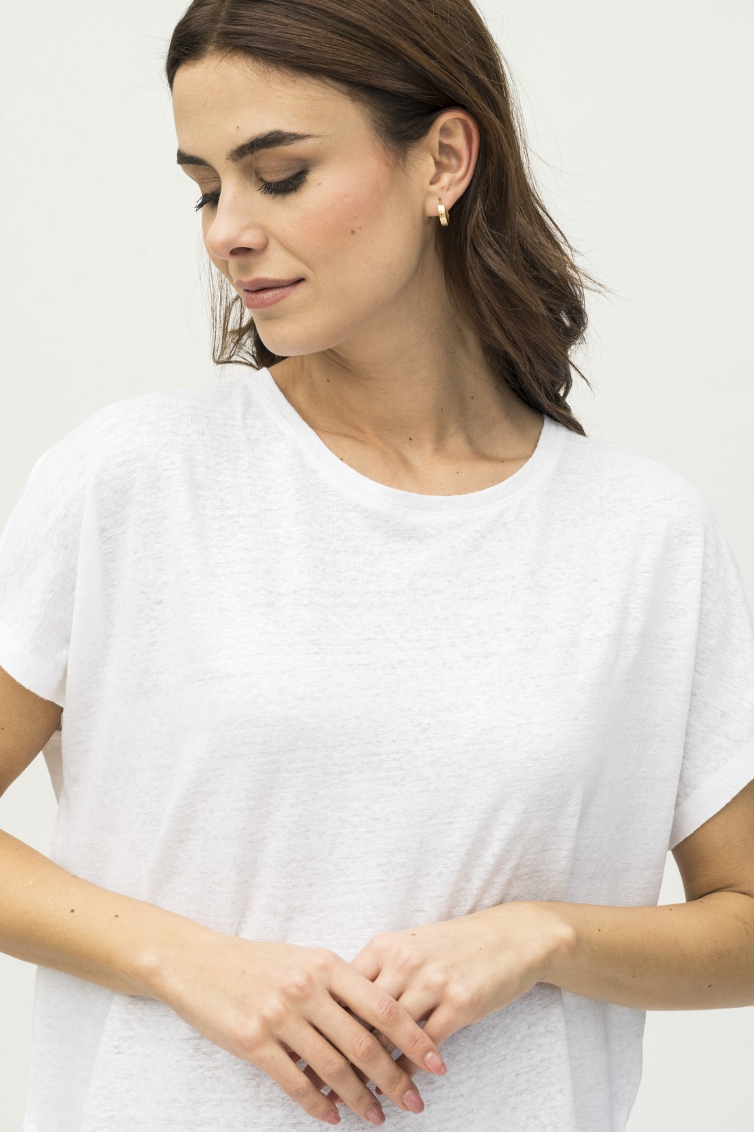 T-shirt con scollo a barchetta, maniche corte, spalla scesa e vestibilità over: un capo versatile e moderno, perfetto sia per look eleganti che per look essenziali. La composizione di lino ed elastan rende questa maglia preziosa e confortevole, mentre l’ampiezza e la fluidità delle forme ne esaltano la leggerezza e dinamicità.