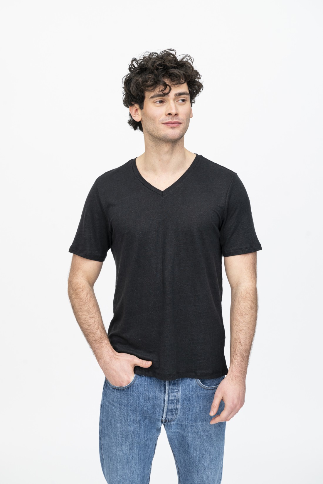 T-Shirt in lino scollo a V manica corta