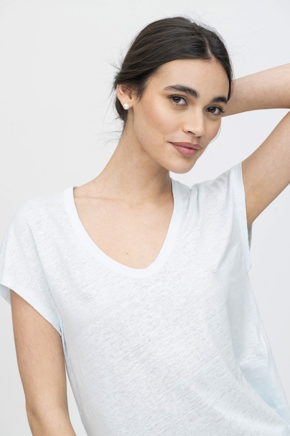 T-Shirt scollo a U in lino