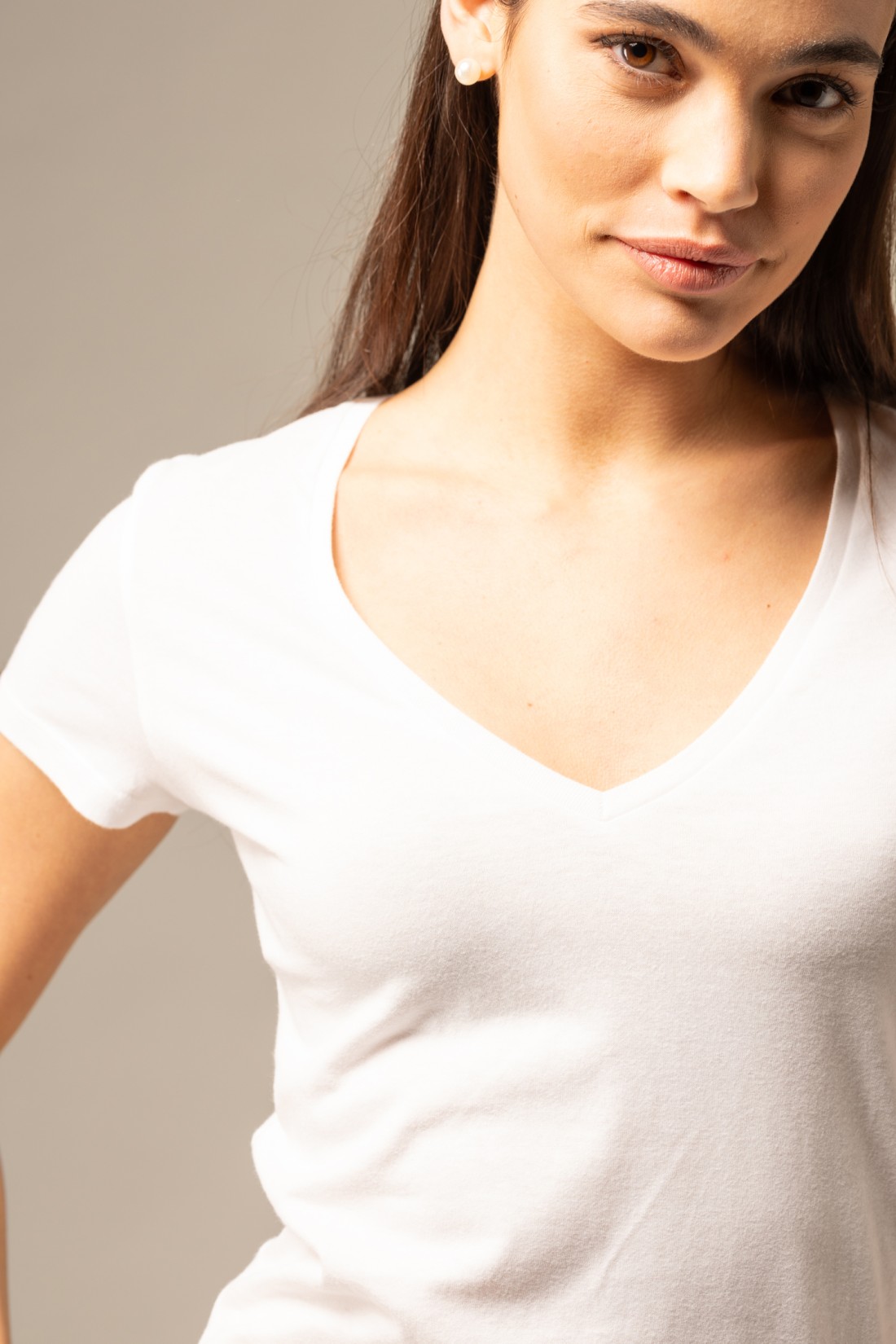 T-shirt scollo a V basica in Cotone Deluxe