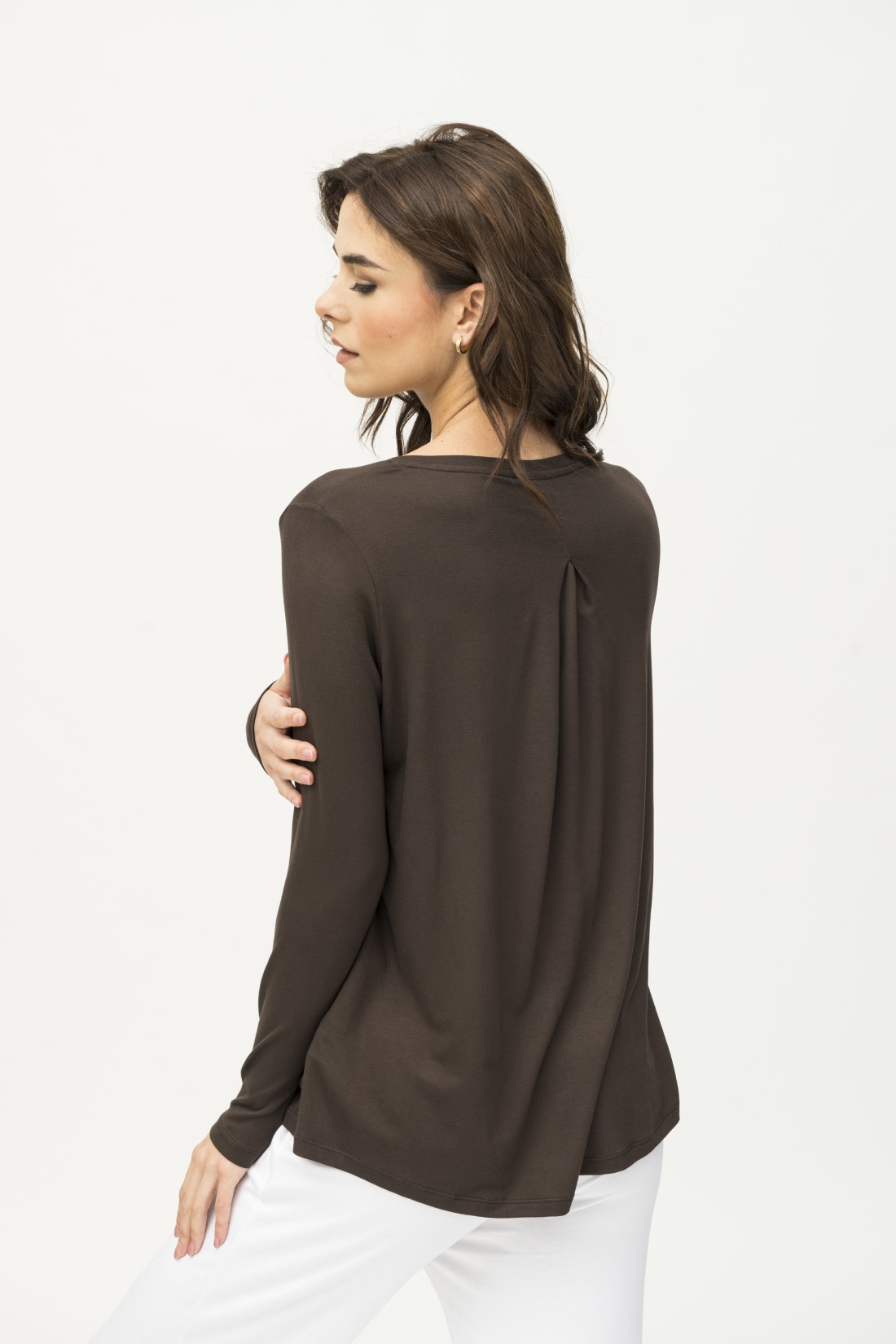 T-shirt scollo a V con pinces sul retro